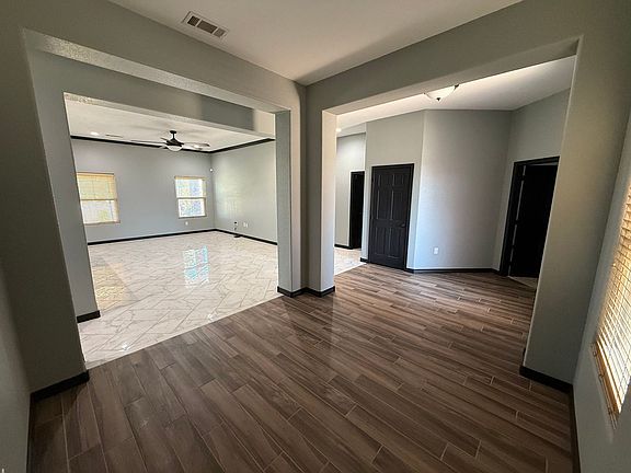 Welcome to your dream home in Clovis, NM! This stunning 4-bedroom, 2-bathroom residence is packed with top-notch amenities designed for your comfort and convenience. The kitchen is a chef's delight, equipped with a dishwasher, microwave, double oven, smooth top electric range, and a refrigerator. The granite counters add a touch of elegance, while the tile floors ensure easy maintenance. The house also features a laundry room with a sink and washer/dryer hookups. The master suite is a true retreat, boasting a large walk-in closet, a large walk-in shower, and a Jacuzzi bathtub. Double vanity sinks further enhance the luxurious feel. The house also offers forced central heat/air, ceiling fans, and an optional security system for your comfort and peace of mind. Outside, you'll find a covered patio with a swing, a hot tub, and a gas fire pit, perfect for entertaining or relaxing. The fenced backyard includes a storage shed, and the attached 3-car garage provides ample space for vehicles and storage. Pets upon approval with monthly $35.00 fee per pet. With a 12-month lease, this home is ready for you to move in and start making memories.