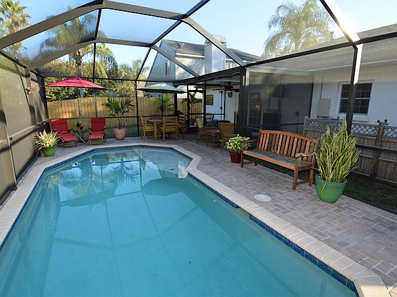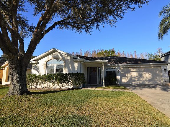 There's no place like HOME...and this completely upgraded 3 bedroom, 2 bathroom home with a screened-in POOL will check everything off your house hunting wish list! The beautiful kitchen is at the heart of this home and perfect for entertaining as it sits open to the large living area and also the adorably cozy family room, equipped with a wood burning fireplace! Beyond the kitchen your sliding glass doors open to a picture perfect screened-in patio and pool that are back dropped by a lush conservation area giving all the peaceful scenes and sounds of Florida nature. The home has gorgeous wood flooring throughout all the living areas and ceramic tile in both bathrooms. The master bedroom has an en suite bathroom with dual sinks and plenty of storage, as well as a completely built-out master closet making wardrobe organization a breeze. Not only is this home nestled at the end of a quiet and safe street with no through traffic...you are also walking distance from one of the 3 Meadow Pointe clubhouses with a pool, tennis and volleyball courts AND a quick drive to The Shops at Wiregrass and Tampa Premium Outlets! Schedule your private showing today and get settled in before the holiday season!