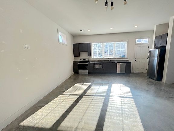 Modern and spacious 2 bedroom, 2 full bath, 1 half bath, open floor plan with private roof top terrace! First floor boasts high ceilings, open concept floor plan, sleek sealed concrete flooring, stylish light fixture, TONS of natural light and a convenient half bath. Stainless steel appliances, granite countertops with large under-mount sink, and shaker style cabinetry complete the kitchen. Up the stained wood stair treads you'll find beautiful LVP flooring throughout, both bedrooms, private balcony, two fully tiled bathrooms, and laundry closet complete with washer and dryer.