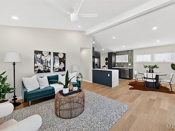WOW!! Completely renovated inside and out, this beautifully updated home is truly move-in ready. Originally designed by renowned Saint Louis architect Ralph Fournier, Father of "Suburban Modernism" this home showcases his signature mid-century craftsmanship and thoughtful architectural details. Exterior upgrades include NEW roof, extensive landscaping, new driveway and retaining wall. Inside, you’ll find new flooring, new HVAC system, new water heater, updated electrical, plus a STUNNING new kitchen and bathrooms. The open floor plan features beautiful hardwood floors, allows for TONS of natural light, and a vaulted ceiling that enhances the home’s inviting and spacious feel. At the heart of the home sits your fully renovated kitchen, designed to compliment the home's architectural roots while offering the convenience of modern living. Custom cabinetry, quartz countertops, designer tilework, and updated appliances create a clean, functional workspace ideal for both everyday meals and hosting. The kitchen opens directly to the main living spaces, reinforcing the easy, relaxed flow that defines mid-century design. The lower level expands your living space with a generous family room, a new half bath and a large unfinished area ideal for laundry and additional storage. A fenced backyard with a new patio provides a perfect outdoor retreat. This thoughtfully renovated home combines modern updates with comfortable living! Ready for its next owner to enjoy!