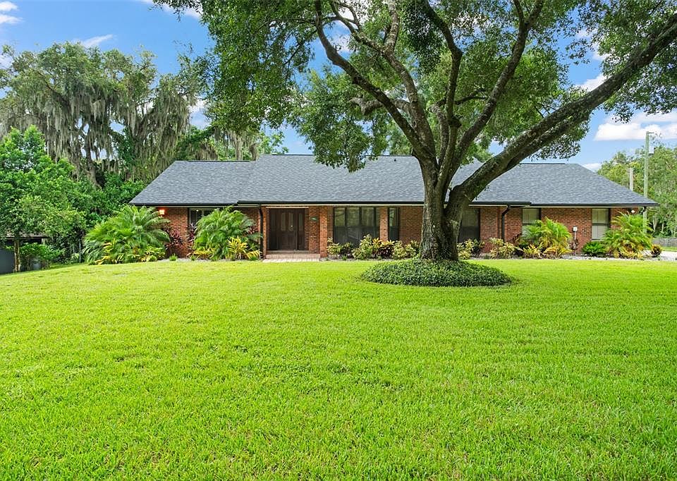 **This property qualifies for a closing cost credit up to $7,500 through the Seller’s preferred lender.**The search is over with this 4-bedroom, 3-bathroom brick front home with a detached studio apartment at the back of the property! This income producing home is sitting on 1 acre of land surrounded by mature landscaping and is sure to check off all the home search boxes! Off the foyer you’re welcomed into the formal living room with beautiful, oversized windows drawing in the natural light. This space flows seamlessly into the formal dining room with a unique glass tray ceiling as the focal point. Circle around into the open concept kitchen with cabinetry all around and direct access to the 2 car garage on the side of the home. The kitchen looks into the spacious family room with a beautiful gas fireplace. French doors lead you out to the amazing bonus space tucked up at the back of the home that makes for the perfect additional family room with access to the guest bathroom and pass through window to the kitchen. Step out back to your covered porch leading out to the fully screened patio with your private pool! This oversized lot provides plenty of privacy to enjoy the Florida summers and lounge year-round on your favorite pool float! This home is complete with a detached studio apartment at the back of the lot, the driveway extends back to a 2-car garage home that makes for the perfect income producing property or in-law suite with a full kitchen and in-unit laundry. The current tenant is month to month with a monthly payment of $1,100. This home is the perfect blend of country living with the expansive lot but still close enough to the hustle and bustle of city living. Schedule your private showing today, you won’t want to miss out on the opportunity to call this house your home!