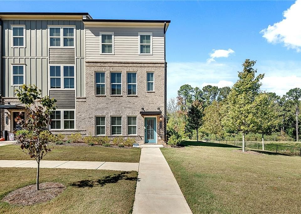 Welcome to 1216 Marlo Way — a like-new, end-unit lakefront townhome offering modern style, comfort, and unbeatable convenience. This three-level, three-bedroom home features an open-concept main floor with 9’ ceilings, luxury flooring, and a stunning oversized quartz island perfect for cooking, entertaining, or gathering with friends. The kitchen includes stainless steel appliances, a gas range, pantry, and coffee bar, all flowing seamlessly into the dining and living areas with peaceful lake views. Upstairs, the spacious primary suite includes a double-sink vanity and walk-in shower, along with two additional bedrooms, a full bath, and a convenient laundry room. The terrace level adds a flexible bonus room—ideal for an office, media room, or guest space—plus an extra half bath and garage access. Located on a quiet street steps from the lake, this home offers access to exceptional community amenities including pools, pickleball courts, walking trails, playgrounds, and upcoming new features like a clubhouse, lake access, and more. All just minutes from downtown Acworth, Woodstock, and Kennesaw, with quick access to I-575 and I-75. Move-in ready, beautifully maintained, and perfectly located—1216 Marlo Way is the home you’ve been waiting for.