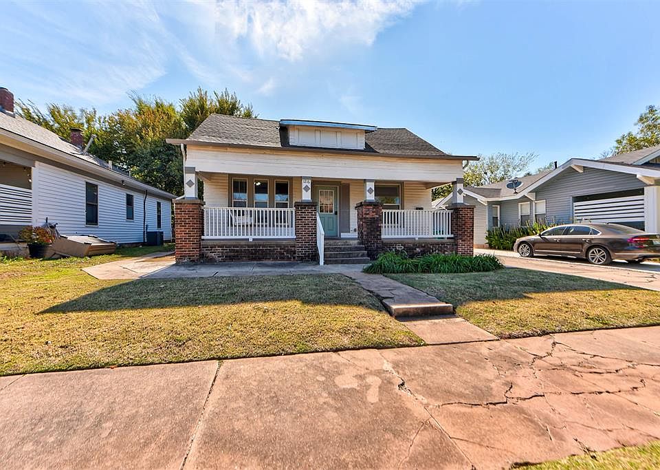 Charming Putnam Heights Home with Income-Producing Garage Apartment. Beautifully maintained 3-bedroom, 1.5-bath home with a 650 sq ft detached garage apartment, with easy access to all of Oklahoma City’s most popular neighborhoods. The main home features a bright open living area with tall ceilings, original hardwood floors, new windows, and an abundance of natural light, creating the perfect space for entertaining. A cozy bonus room with French doors is the perfect place for an office or den, and a spacious laundry/mudroom. Fresh neutral paint throughout makes it feel move-in ready. The detached garage apartment offers a private entrance with a brand new central heat and air unit! kitchen, bath and living area perfect for rental income. With a classic oversized porch, off street covered parking, and easy access to dining, parks, and downtown. This home blends character, comfort, and convenience in one beautiful package.