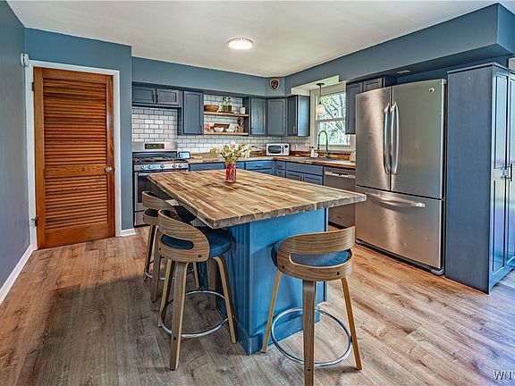 Incredibly Spacious Ranch Home! 4 Bedrooms, 2 Full Baths, A Rec Room, Back deck, Patio & Garage! All on a beautiful parcel with a front and back yard to enjoy this summer. Fabulous new kitchen featuring butcher block countertops. Nice open flow with a sliding glass door to your back deck. Hardwood floors are in great shape. A separate entrance/exit to the basement through a traditional door and a short set of stairs. The lower level offers a rec room with home theatre, a bedroom with double closets and a full bath. 530 extra sq ft in finished basement is included in total. Updates include a new roof 2018, Furnace 2017, HWT 2022, and vinyl replacement windows. What a great find!