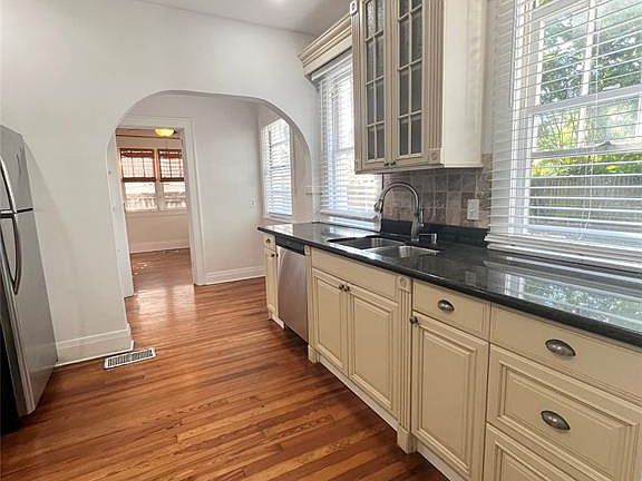 Granite countertopsEnclosed front porchTraditional archesBeautiful original wood floorsUpdated kitchenStainless steel appliances