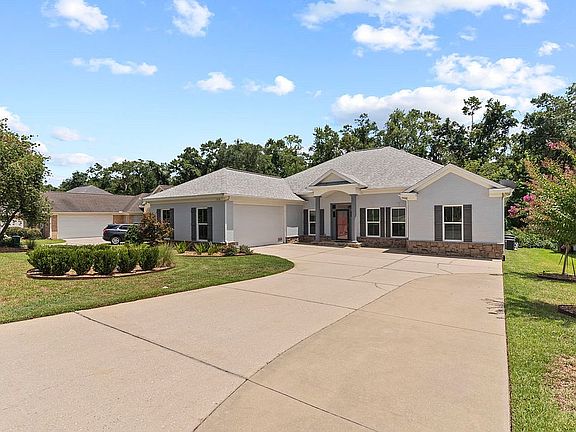 Within a short walk, Buck Lake Elementary, Swift Creek Middle, the Alford Arm Greenway Trails, a kayak/canoe launch, and the newest public library are all easily available. This original owner home has been maintained and consistently refreshed (windows, doors, roof, pool, hot tub, outdoor kitchen, outdoor paint, insulated garage door, garage storage system, and the list goes on and on). A choice of two Publix stores, COSTCO, the best movie theater, Walmart, and places to eat and shop make it super convenient. A quick ride to hop on Mahan's I-10 with quick trips to Thomasville Road and Monroe Street. The house itself is beautiful. The updated, oversized windows and door overlooking the screened pool, hot tub, and outdoor kitchen allows the outside light to stream through the house. The double split plan gives everyone their personal space. Flanking the foyer are a formal dining and an office. Then, to the right of the livingroom are two bedrooms and a bath, a fireplace, and then a bed and bath to serve the pool. To the left of the living room is an additional dining area, a breakfast bar, and generous amounts of cabinet and countertop space. If it were not for the outside kitchen, the indoor kitchen would be the heart of the home. Off the kitchen, a full sized utillity room with cabinets, sink, and countertops for laundry and storage, plus a pantry. The primary closet sits between the laundry room and the primary bedroom, so there is no need to worry about noise. The primary bedroom features a walk-in closet, double vanity, soaking tub, step in shower, water closet, and linen closet. Access the back porch from either the living room or the primary bedroom. A large screen TV and two fans on the back porch, which then steps down to a full outdoor kitchen featuring hot and cold water, a disposal, granite countertops, stainless steel drawers and cabinets, a GE Monogram refrigerator, an Evo Natural gas grill, and a large Big Green Egg. So many choices: Pool, kitchen, porch, or hot tub? All are illuminated by a custom screened frame including a Nebula LED lighting system with Wifi. Searching for privacy? No neighbors behind the house. The neighborhood greenspace backs to the Alford Arm Greenway and Trails meaning the only neighbors are the deer walking in the woods. The question is what is there not to love about this home? It's fabulous!