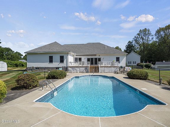 Rare Find! Impeccably designed (2001) custom Ranch/Rambler home, on 2-acre lot. Private back yard features heated inground swimming pool with new pool heater (2020). Maintained to the highest standards with recent updates including a new hot water heater, new furnace, and new AC 2021. Natural light fills all rooms and the high ceilings (14 and 11ft). Spacious kitchen with ample countertops, and a formal dining room with a tray ceiling. 3 Bedrooms and a dedicated office with built-in cabinets that could be easily converted to a 4th Bedroom. Large primary suite with walk-in closet, 2 full and 1 half Bathrooms. Large front, back and side yards. This move-in ready home is perfectly located for access to shopping, restaurants, Mohonasen schools and parks.