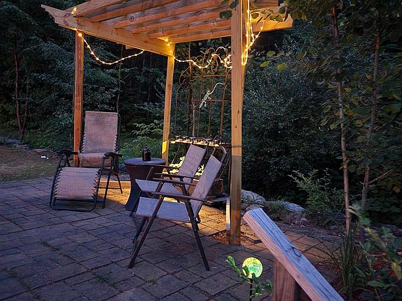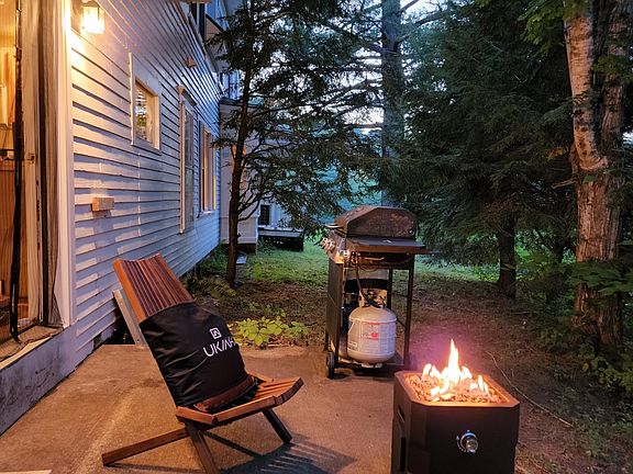 There are 2 energy efficient Renie heating systems, one on each floor. A private grilling patio off the kitchen and a common shared raised stone patio with fire pit and gazebo.