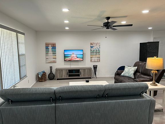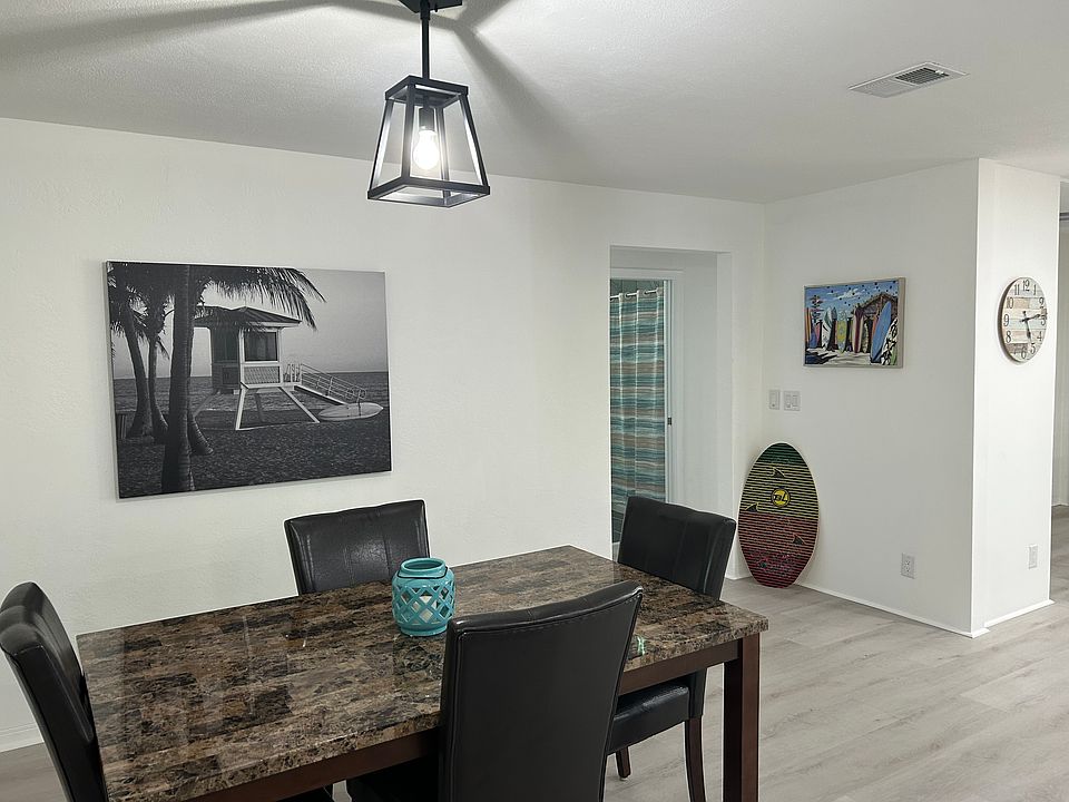 This completely remodeled home comes with a large, 2-car garage with parking also available on the driveway and street. The screened in back patio keeps out the bugs while you enjoy being outdoors. The fenced-in backyard is great for kids (and adults!) to play and grill out on the gas-grill. Every room has a fan for cool, comfortable sleep. All appliances are NEW and work well. The kitchen is stocked with plenty of necessities and is open to the living and dining rooms. NEW washer and dryer on premises. High-speed FIBER internet throughout the whole house.