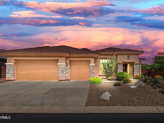 Nestled within the highly desirable community of Anthem Country Club, this exquisite residence offers an unmatched lifestyle in the heart of North Maricopa County. Set on a golf course lot backing to the rough of the 18th hole tee box and showcasing Stunning Mountain Views, this home is the epitome of luxury, lifestyle and convenience. Built in 2005, this exceptional 3 bedroom, 2.5-bathroom estate, has plenty of room for everyone, featuring 2,649 square feet of pure elegance. As you pass through the front entry hall you're greeted by the spacious Great Room. Featuring an expansive family room and dining room, fireplace with display niches, surround sound speakers and beautiful mountain and golf course views, the open floor plan seamlessly leads to the gourmet kitchen, this is certain to be the center of activity in your new home.