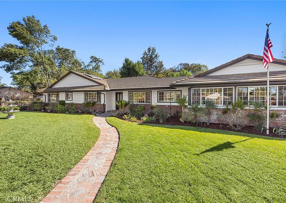 One-of-a-kind SINGLE STORY home, nestled on the prestigious Valencia Mesa Drive on appx. 21,500+ sf lot! Delightful curb appeal boasting private GATE and beautifully landscaped yard with romantic water fountains and lush foliage. This charming home showcases the timelessness of classic design elevated w/ modern convenience. Enter through a custom Dutch door leading into a spacious kitchen with high-end Wolf, Sub-Zero & Bosch appliances, stylish kitchen island and extra large counter space perfect for hosting. Spacious dining room with beautiful wood beamed ceiling, intimate fireplace, and large windows and slider providing light & bright ambiance. Great room with handsome brick wall and direct access to an Entertainer's backyard with expansive patio perfect for outdoor BBQ to spend balmy evenings dining al fresco, sparkling pool with waterfall and poolside lounging with cozy firepit, lush greenery and fairytale landscaping with walking path winding through multiple fruit bearing trees and tiered planters, personal greenhouse, chicken coop, a tortoise house with slide and a storage barn, a peaceful retreat that offers something for everyone while preserving a peace & privacy ambiance. All bedrooms provide ample space including a primary bedroom with custom built-in cabinets, dropdown Murphy Bed, walk-in closet and a stylish tub providing an ultimate relaxation with artistic detail. This special home is equipped with PAID Solar System, water filtration system, new water softener, fresh exterior Tex-Cote paint, and sweeping driveway with potential RV parking. A remarkable opportunity boasting every advantage of its prime location, proudly located in award winning Fullerton district, just moments away from the popular Laguna Lake and Fullerton Loop (hiking, biking, equestrian) trails, golf courses, St. Jude hospital and endless shopping/dinning options Fullerton has to offer. A true rare gem tucked away in a serene location perfect for entertaining while preserving an atmosphere of quiet intimacy. This one of a kind property on this well-desired street is a must see!