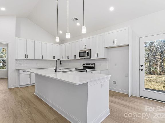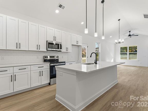 This light and airy NEW CONSTRUCTION gem blends modern design with everyday comfort on a LARGE 1.75 acres. Featuring 3 bedrooms and 2 bathrooms, the open floor plan plus vaulted ceilings create a bright, spacious feel throughout. The chef-inspired kitchen is a true showstopper — featuring a large island, quartz countertops, white subway tile backsplash, stainless steel appliances, abundant cabinetry, and a generous pantry for all your storage needs. Each bedroom offers sizable closets and thoughtful finishes, ensuring a perfect balance of style and function. The separate laundry room adds convenience and a side yard accessible entrance from the dining area leads out to the MASSIVE side yard! 2 Car Garage is phenomenal for keeping your cars protected OR great for additional storage.