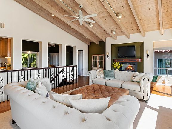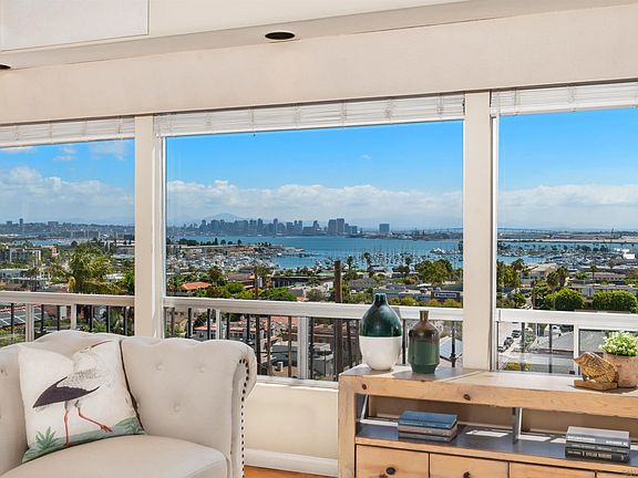 Panoramic, unobstructed views! Nestled in the heart of Point Loma, this fantastic home offers 180 degree views of San Diego Bay, the ocean and the downtown skyline from every main living area. Features include a formal living room with a fireplace and a dining room, ideal for hosting memorable dinner parties and gatherings. The kitchen boasts a terrific view breakfast bar where you can savor your morning coffee while admiring the views. Upstairs, a large family room awaits, complete with another fireplace, picture windows and a walk out deck to capture the gorgeous views. There is a fantastic den that opens off the family room which could easily be converted to a fourth bedroom. The expansive primary suite upstairs features a spa-inspired bathroom and a large window that captures the glorious views of the bay. The two downstairs bedrooms are spacious and private. The third bedroom features a pocket door and could be a great office space. The home has a wonderful floor-plan and features many custom architectural details which provide style and function. There is a viewing deck on the main level, plus a large patio over the garage, perfect for soaking in the sun or hosting alfresco gatherings against the backdrop of spectacular bay views. The backyard with a covered lanai offers a tranquil oasis, where you can relax and enjoy the private garden. Located close to all that Point Loma has to offer such as the shops and restaurants of the Village, Shelter Island, Kellogg Beach, the yacht clubs and trails of La Playa. This is the home you have been waiting for!
