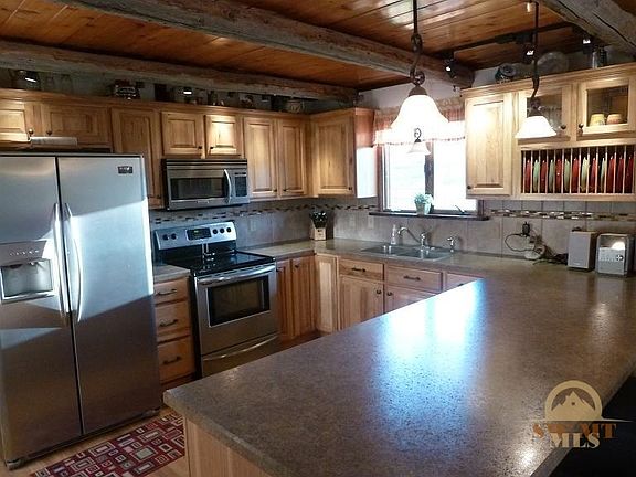 Own a true Montana country horse property! Recently remodeled with a beautiful new kitchen, bathroom, roof, hot water heater & heating system! Located only 15 miles from Bozeman, this home is filled with character: built-in barnwood entertainment center, exposed beams, family room, pellet stove, laundry/mud room with 1/2 bath, unfinished basement plumbed for another bathroom, private balcony off master bedroom. Set up for horses with year-round creek, barn, outdoor riding arena, fenced & no covenants!