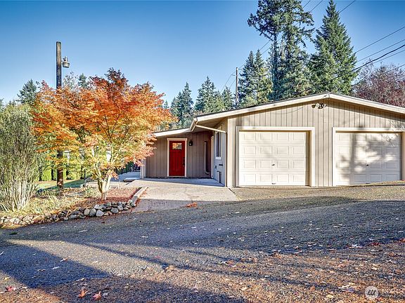 Welcome home to this beautifully maintained three bedroom Poulsbo rambler with a new roof on a peaceful ¾-acre lot. Enjoy country living in a quiet neighborhood. The open-concept layout, perfect for entertaining, is anchored around the updated kitchen, with vaulted ceilings, and a cozy fireplace. The private primary suite offers a large dressing room and full bathroom. Enjoy working from home in the quiet home office with its own detached entrance. Outdoors, enjoy sunny western exposure on the patio with updated railings overlooking the fire pit, sheds and mature fruit trees. Access to Brownsville waterfront amenities is just 1.5 miles down the road with boat launch, park, pavilion, and clubhouse.