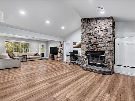 Welcome to your dream retreat! This stunning home is nestled on over 11-acres, offering the perfect blend of tranquility and modern living. Step inside to a spacious interior with an open-concept living area that features a wood burning fireplace with a beautiful stone surround. The master suite is a true sanctuary featuring dual vanities, a soaking tub, and a separate shower. Upgrades in 2022 include freshly painted walls and cabinets, popcorn ceiling removal, new can lighting, a full bathroom addition, Smartcore Luxury LVP wide plank flooring, Stainmaster Elite carpet, and a fully renovated garage that is now a bonus room. Outside, the expansive property offers endless possibilities including a spacious deck, fire pit and a 2,000 square foot shop. Enjoy the serenity of the property with a creek on site. This home offers privacy and convenience with I-49 only 17 minutes away. Don’t miss this rare opportunity to own a beautiful home on a sprawling piece of land—schedule your private tour today!