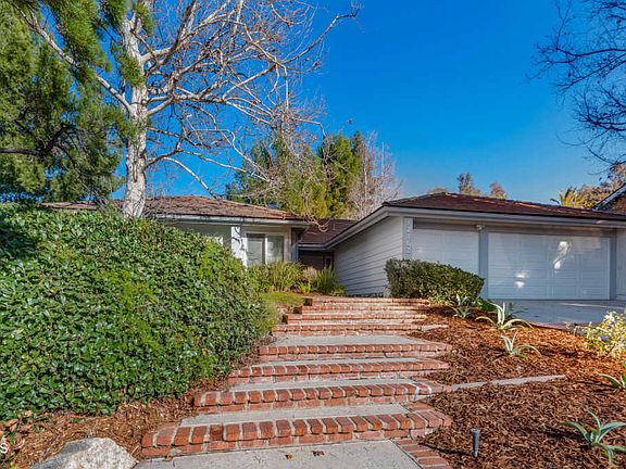 Rarely does a single story ranch style home become available nestled among million dollar residences. A welcoming entry with a lovely flower lined brick path, leads you into a double door entry with a step down into the living and dining areas with vaulted ceilings. The living space offers views of the back yard with mature redwood and pine trees and a patio. The lot, over 14,000 s/f, has ample room for a pool and is fully fenced. Inside, ample windows, allow natural sunlight to stream into the living space. The living room has a gas assist fireplace, and adjoins the family room and kitchen with its own dining area. The kitchen, with original oak cabinets, has newer quartz counters, newer stove and range hood, and a sliding door to view the back yard. A hallway leads you to the master suite, which also has a sliding door to the back yard, and its spacious bathroom offers a sunken tub with separate shower. There is a full bath to accommodate the three (3) additional full size bedrooms. Windows are dual glazed, there is newer flooring throughout - and bring your vehicles because there is an attached 3-car garage. The entire home has been recently painted, and there are newer window coverings.