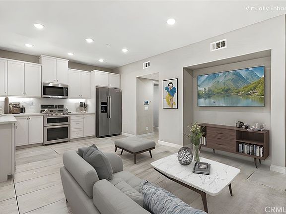 Explore this contemporary solar-powered 3-bedroom, 2.5 bathroom townhome in The Groves community in the city of Whittier. This former model home plan features an open floor plan and abundant natural lights. It also offers a spacious living room, dining area, upgraded kitchen with quartz countertops, and a full-height stylish backsplash. Upstairs you'll find three bedrooms, including a generous primary bedroom with a walk-in closet and ensuite bathroom. Enjoy the convenience of an attached 2-car garage with direct access. This home is also equipped with energy-efficient amenities such as a tankless water heater and complete Wi-Fi coverage smart home technology (you can control the lights, thermostat, door locks and more through the Apple Home app). Additionally, a Ring doorbell, water softener, washer, dryer, and refrigerator, TV, are included. The Groves is a gated, master-planned community offering resort-style amenities and a walkable lifestyle. Key features include The Commons Resident Club and a historic community center for events, multiple pools, a spa, a 24-hour fitness center, a Sky Deck, BBQ park, and scenic parks connected by a Heritage Trail. Its proximity to Uptown Whittier's shops, restaurants, and entertainment ensures high walkability, a dedicated food court nearby, creating a vibrant, family-friendly environment.