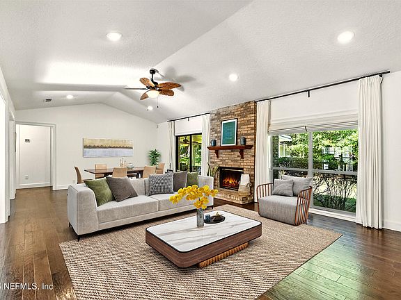 Welcome Home! Live the peaceful, tranquil lifestyle you've been dreaming of in this updated retreat, tucked away in an established neighborhood on a serene .31-acre lot. As you step inside, the hand-scraped wood floors guide you through a split floor plan, NO CARPET. The kitchen exudes personality and comfort w/a cozy bay window and built-in banquette—a perfect space to sip coffee and start your day. The spacious family room, w/a brick fireplace and vaulted ceilings, flows to the dining area and screened lanai w/pine tongue-and-groove ceiling. It's the perfect spot to unwind w/views of the peaceful backyard. The primary suite includes a walk-in shower, double vanity, and walk-in closet. Optional Flex area to easily adapt to your needs. An oversized laundry and pantry area w/custom wood shelving. Outside, your backyard includes a storage shed and room to park a boat, RV, or trailer. Best of all—no HOA or CDD fees. Just minutes from A-rated schools, shopping, and Julington Creek Marina Ask about 1% for closing costs with Preferred Lender. Roof 2017, HVAC 2024, Water Heater 2023. This is more than just a houseit's a place to feel grounded, inspired, and truly at home. Schedule your private tour today and experience the lifestyle you've been dreaming of.