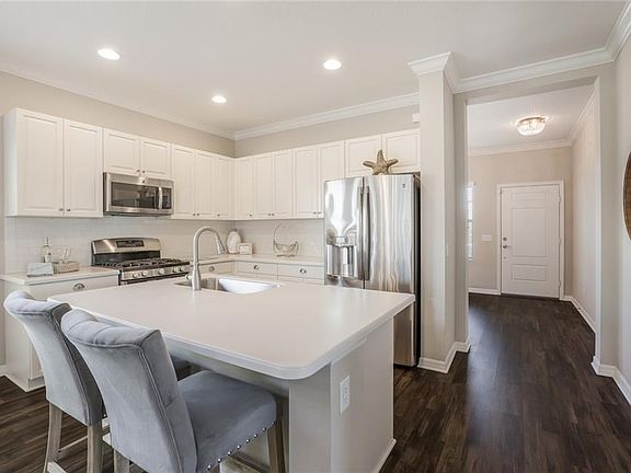 - Interior Features: Ceiling Fans(s), Crown Molding, Walk-In Closet(s), Window Treatments, Open Floorplan, Solid Surface Counters, Solid Wood Cabinets, Eating Space In Kitchen, Kitchen/Family Room Combo, Tray Ceiling(s)