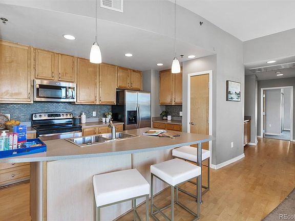 Charming, loved, maintained 2 bedroom, 2 full bath condo with Elevator Access in Northglenn Pavilion Lofts. Total 1,368 SF. Open Floor plan with large living room with gas fireplace, Stainless Steel Appliances, Maple cabinets with tasteful Tile Backsplash, large Kitchen island, and Pantry closet. Multiple built-ins throughout this unit. Two large spacious bedrooms. Lovely owner's retreat with en-suite 5 piece master bathroom, large tub, dual vanity sinks with huge walk-in closet and built-in cabinets. Laminate flooring, and neutral carpeting. Two covered balconies. 1 car parking spot in underground secure parking garage. Within walking distance of Light Rail. Near Highway access, popular shopping and restaurants, etc.