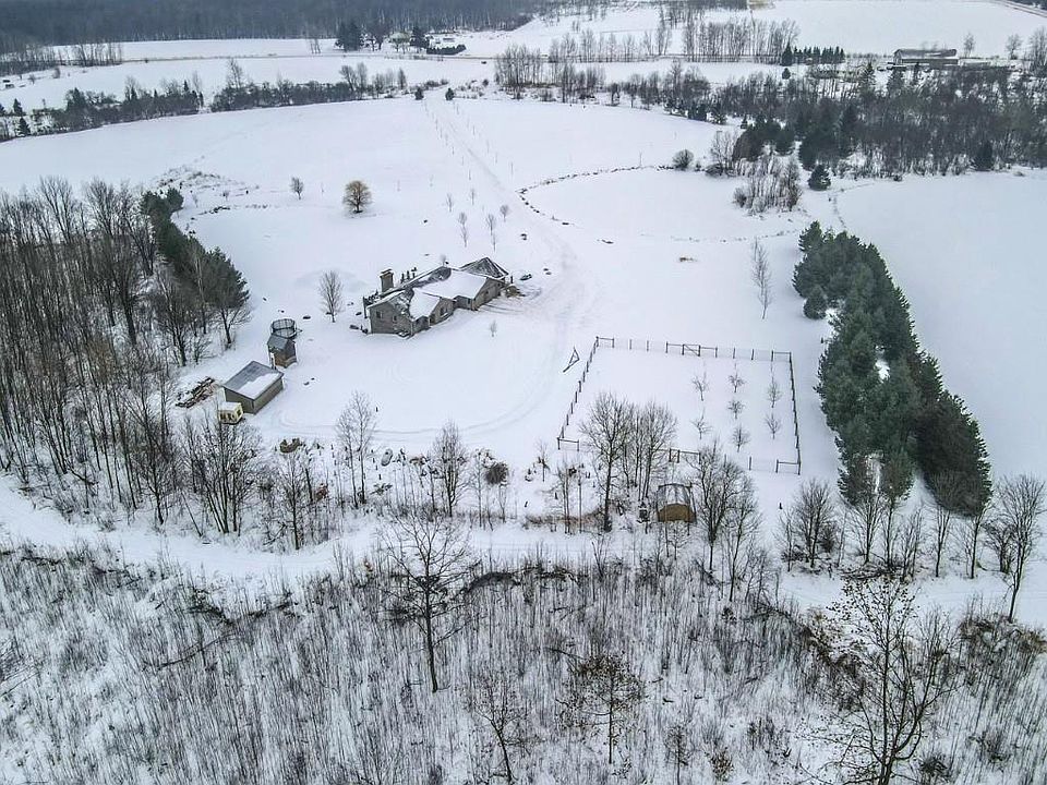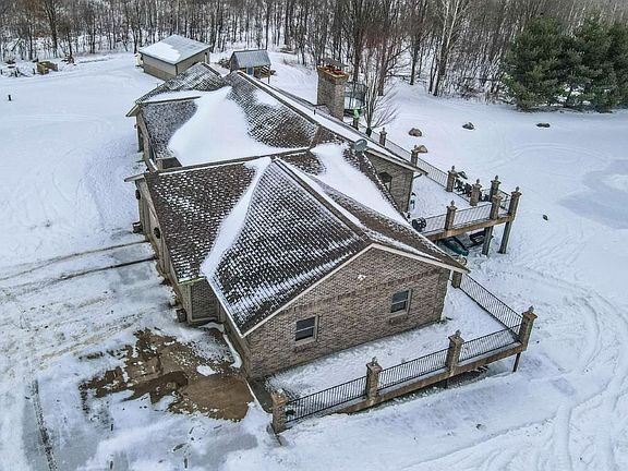Quality-built, full brick, single-story home seated on 16.40 acres in Athens. Featuring just over 3,000 sq ft, with a walk-out basement and an oversized 3-car attached garage, plus a massive workshop located beneath the attached garage (spancrete construction and an overhead exterior door provides easy storage access). The basement, basement workshop, and attached garage all feature in-floor heat powered by an outdoor wood boiler with an accompanying wood shed. The system also includes a heat exchanger tied into the furnace for added efficiency. Exceptional outdoor living spaces include an upper-level full concrete wraparound patio and a lower patio, both offering stunning views of the pond and surrounding countryside. An outdoor wood-burning fireplace?frequently used and loved by the owners?adds to the entertaining appeal. The property features two ponds ideal for swimming and recreation. The back pond reaches approximately 14-feet deep, while the upper pond is about 5-feet deep. Both are stocked with jumbo perch, smallmouth bass, bluegill, and more, with routine monthly treatment,Additional outdoor highlights include a two-story playhouse, two permanent tree stands that will stay with the property, and front fields currently harvested for hay by a neighbor at no cost and with no lease obligation. A fenced garden area includes an orchard with apple, pear, plum, and cherry trees. The main level features open-concept living enhanced by a vaulted wood ceiling, decorative shelving ledges, and patio access from the dining area. Gourmet kitchen with an 8-ft island, oven and built-in microwave, electric cooktop, stainless appliances and ample cabinet storage. Recently updated shiplap entryway from the garage. The owner?s suite has a private ensuite, including a jetted tub, dual-sink vanity, tiled shower, and walk-in closet. 2 additional bedrooms share an updated full bath with new vanity and modern fixtures. The lower level offers a large family room with two sliding doors to the backyard, with a wood-burning fireplace, a 4th bedroom, laundry area, a 3rd full bathroom with a tiled shower. 3 Ring cameras are included, along with Starlink high-speed internet equipment and boosters. A leased 500-gallon LP tank through Rightway Stratford ($100/year) typically requires only one fill per year thanks to the wood boiler. The property currently utilizes holding tanks for septic, and the sellers have already obtained a permit for a future mound system installation if desired. Conveniently located just 20 minutes from Marathon, 25 minutes from Merrill, and 35 minutes from Wausau. Schedule your showing today!