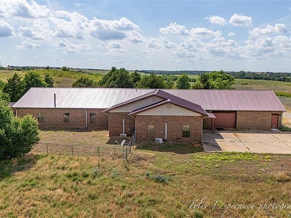 If picturesque sunrises and endless possibilities are your thing then look no further than this gorgeous brick home that sits atop the high point of 6.5 rolling acres just north of Lookeba Oklahoma. The spacious 3,600 plus square feet of living space has received continual renovation over the past three years including paint, bathroom updates and ceiling fans. Not to mention functional improvements such as new lateral lines that were installed in 2024 and three geothermal units (installed in 2022) that efficiently heat and cool the building including the 2,100 square foot attached garage. This isn't your ordinary garage but rather a 37' x 56' shop featuring zoned climate control, tape and textured walls, excellent lighting, and ceiling fans. If more living space is needed then the garage could easily be converted by framing walls under the cathedral style trusses. The property not only overs panoramic views and visiting wildlife but also has U.S Highway 281 frontage making work commutes convenient and timely.