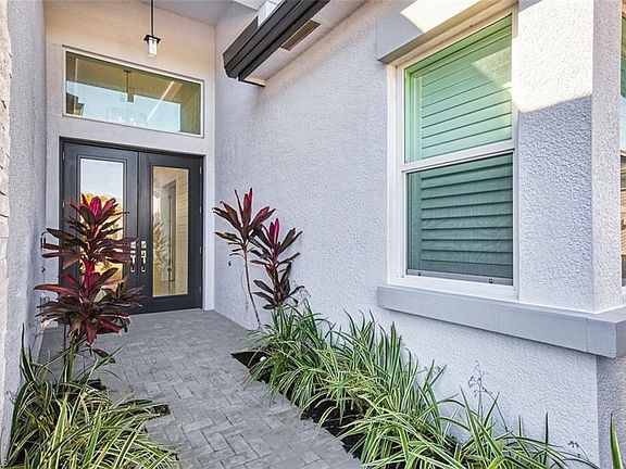 This immaculate, professionally upgraded residence in the coveted Valencia Trails community offers the epitome of luxury, resort-style living. Built in 2024, this home is truly move-in ready and features a seamless blend of sophisticated builder upgrades and personalized owner touches designed to exceed every expectation. The spacious floor plan spans 2,788 square feet of air-conditioned living space (approximately 3,565 total square feet), featuring three generous bedrooms plus a versatile den, and three and a half exquisitely finished bathrooms. Southern exposure ensures the home is bathed in warm, natural light throughout the day. The interiors showcase continuous upgraded tile flooring, elegant shiplap accents in the living room and foyer, and beautifully designed lighting and fan fixtures. The gourmet kitchen is a chef's delight with top-tier upgraded cabinets and premium countertops. The owner’s dedication to quality is evident in the custom details, including rich wooden plantation shutters on all windows and elegant drapes in the main living areas. The master bathroom provides a spa-like retreat with all designer finishes. This is a Smart Home! For modern convenience, the home also features automated Lutron shades with automated Lutron drapes in one bedroom, cameras throughout the property allowing owners to remotely view live feeds and ensure peace of mind, a wired integrated sound system and an upgraded natural gas instant hot water system. Seamless indoor/outdoor living is achieved via the expansive, extended lanai, perfect for fresh air outdoor entertaining. Motorized zipper screens enclose the entire space, allowing for year-round, bug-free enjoyment of the beautiful Florida weather. A spacious three-car garage offers ample room for vehicles and storage. Nestled within Valencia Trails, this property grants access to a vibrant, resort-style lifestyle where every day feels like a vacation. The community's top-quality clubhouse serves as the social epicenter, offering unparalleled amenities including a state-of-the-art fitness center, a theatre, cooking class facilities, a card room, four beautiful pools, tennis courts, pickleball courts, and bocce courts. This stunning property is an absolute must-see for those seeking a maintenance-free, luxurious lifestyle in a vibrant, engaging community. Come take a look and start enjoying the vacation life you deserve!