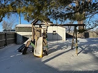 Jump into spring with this large 4 bedroom, 2.5 bath home with a 2 car detached garage. You can relax on the front porch or on the back three season porch with a private backyard. The kids will enjoy a jungle gym and playhouse. This home offers a large eat in kitchen plus a dining area. Great for entertaining. Primary bedroom with bath and walk in closet on the main level. This house also offers parkay flooring in the entryway, main level laundry and office with lots of storage throughout. All bedrooms upstairs have wood flooring with closets. This house has much to offer to the first time home buyer or someone looking for their forever home. Don't miss this opportunity.