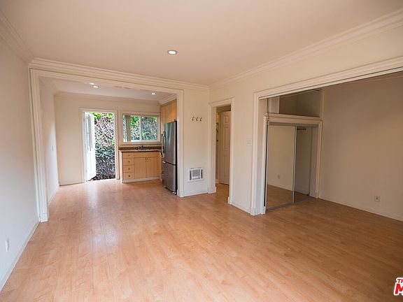 Positioned in an unbeatable location between Santa Monica Blvd and Wilshire Blvd, this meticulously maintained end unit alcove studio offers a prime living experience. Situated in an intimate five-unit building, convenience is at your doorstep with proximity to grocery stores, restaurants, coffee shops, and public transportation. The unit features a private patio off the kitchen, perfect for dining or simply unwinding. The bathroom boasts a new shower, and the thoughtful design includes two closets for ample storage - one in the alcove and another conveniently located in the hallway. One parking spot is provided. Don't miss this opportunity to reside in the heart of it all.