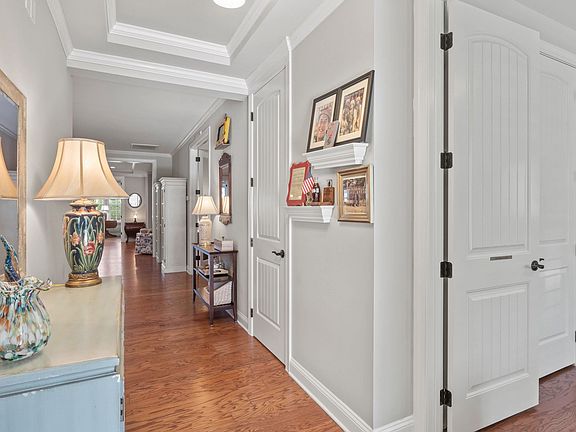 The Jewel of the Neighborhood! Popular Salinger Floorplan w/Dual Primary Suites on Main Level located in award winning 55+ neighborhood with Pool, Tennis, Pickelball, Fitness and much more. Enter to gleaming hardwoods throughout, 9' ceilings, trey ceilings, extensive millwork and detail, trending tones & updated fixtures. Gorgeous Gourmet Kitchen w/loads of 42"Oak Cabinets, Granite, Island w/counter seating, Gas CT, Wall Oven, Microwave & WI Pantry! Enjoy the multi room view through the open floorplan, ftrs crown moldng throughout. Sunroom w/glass dble frnch drs & walkout to large patio w/pergola. Two Primary Suites each w/Bay Window, Trey, ensuite bathrms ftr Overszd Shower w/bench, dual sink vanity, wtrclst and WI. Main level also features third bedroom shown as office w/ensuite bath and a flex room w/french dbl doors also on main. Hardwoods flow throughout upstairs featuring large bonus room, fourth bedroom, full bath and a generous storage room! Butlers Pantry w/additional cabinets leads to the laundry room and oversized two car garage features a Workshop Space can also be used for more storage! Must see!!!