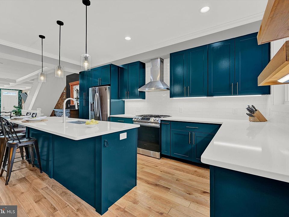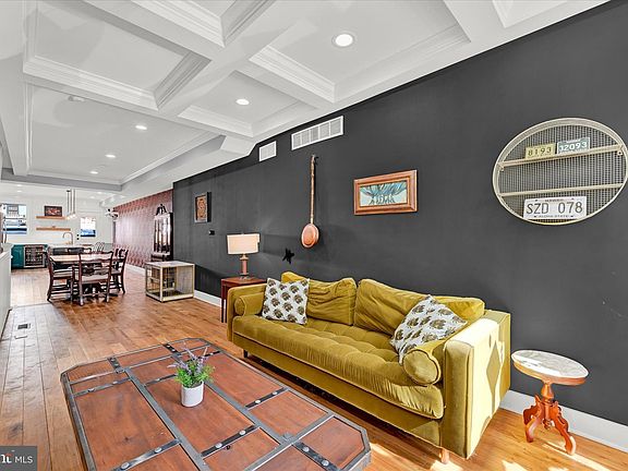 Welcome to luxury reimagined in the heart of Federal Hill on the picturesque, tree-lined Battery Ave. This stunning 3-bedroom, 3.5-bath home boasts an oversized two-car parking pad, a fabulous roof deck, finished basement, and 7 years left on the CHAP tax credit. A 2.9% VA assumable loan for eligible buyers. Beautifully renovated in 2021, this home seamlessly blends modern amenities with the original charm of exposed brick walls and elegant moldings. Step through the front door into a bright and magnificent living room featuring a cozy fireplace, perfect for intimate gatherings. Gleaming hardwood floors lead you through the spacious dining room and into the chef’s dream kitchen. This gourmet space is equipped with stainless steel appliances, quartz countertops, a wine fridge, open shelving, and a massive center island – ideal for hosting summer soirées. Upstairs, your private primary bedroom retreat awaits, complete with custom built-in closets and a spa-like bathroom featuring a tile shower and marble vanity. Convenience is key with the washer and dryer conveniently located on this level. A second spacious bedroom and full hallway bath complete the second floor. The third level offers another primary bedroom option with a generous bedroom, ample closets, and an en-suite bath. Entertain in style on your way to the rooftop deck, where you'll find a deluxe skybar and bonus area with a beverage sink, wine fridge, and custom cabinetry. Complete with a spacious and shaded catio under the deck for your fur babies. Enjoy vibrant views over South Baltimore and the city skyline – your friends will adore watching the 4th of July fireworks from this prime spot. The finished lower level offers versatile bonus space, perfect for a home office, entertainment room, or fitness center, and includes ample storage and a half bath. Experience the best in city living, just steps from Fed Hill Park, Cross Street Market, and all of Federal Hill’s renowned restaurants, bars, and shops. With off-street parking and the CHAP tax credit, this home is a delightful urban retreat. Don’t miss out on this gem – your dream home awaits!