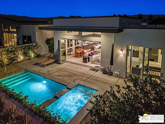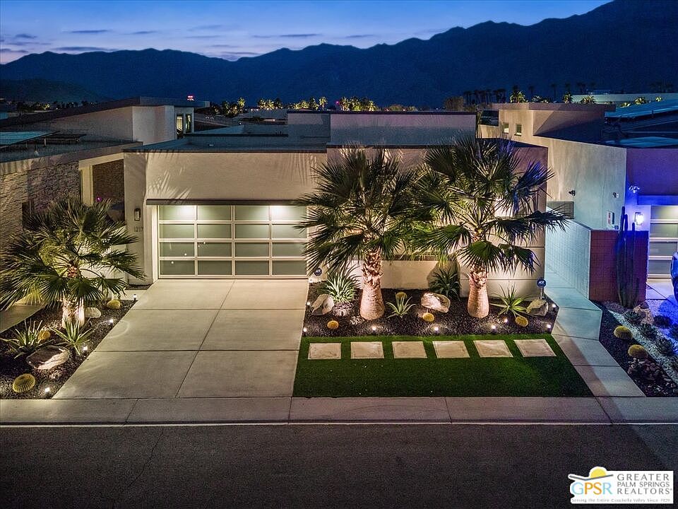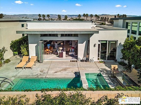 This almost new, Brizo model offers 2+ convertible den/office/bed with breathtaking mountain views in the very popular Escena development. The great room drinks in the light through soaring walls of glass and provides excellent indoor/outdoor flow for desert living and entertaining. The primary suite opens to the pool/spa and fire pit, while its luxurious bath offers a large soaking tub & separate glass shower and walk-in closet. The secondary bedroom suite offers guests privacy with their own bath. The den/office can easily fulfill the role of 3rd bedroom. A powder room is across the hall. There are stunning tile floors throughout while recessed lighting illuminates from above. Your contemporary kitchen offers a large island with a breakfast bar, wine fridge, and high-end stainless steel appliances. Gather under twelve-foot ceilings by the linear fireplace in the great room before dining stylishly underneath a chic chandelier. This impeccable property has a security system, gorgeous landscaping and OWNED SOLAR. Escena offers a beautifully landscaped gated community with access to the Clubhouse, golf course, dog parks, and low HOAs.