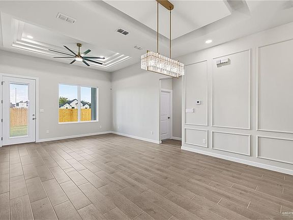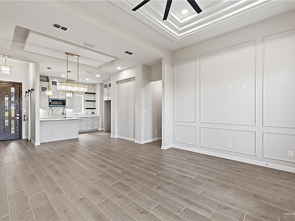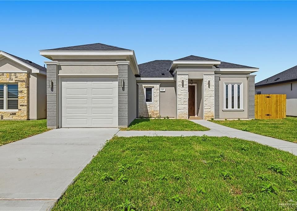 Discover comfort and style in San Juan's most popular subdivision! This beautiful and affordable home features a smart, open layout with custom kitchen—quartz countertops, large island, under-cabinet lighting, and incredible storage. The living room is sure to impress with modern ceiling details, elegant sconces, big windows, and a stylish TV wall. Enjoy 3 spacious bedrooms (plus an extra nursery or office), 2 full bathrooms, including a private master suite with a spacious shower, dual sinks, and a walk-in closet with built-ins. The backyard is fully fenced with a patio slab—perfect for BBQs! One-car garage, sprinkler system, and great curb appeal. Don’t wait—schedule your showing today!