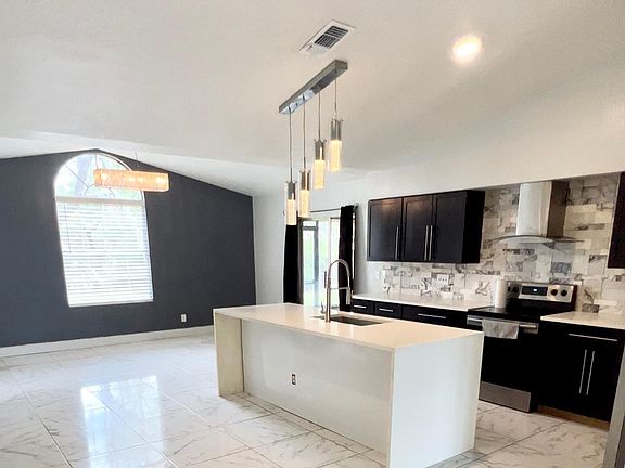 Beautiful newly remodeled, top to bottom, home with modern and luxurious upgrades and fixtures! Open floor plan and cathedral/vaulted ceilings make the home feel twice the size! Faux marble tile throughout.. 8.5 ft quartz waterfall island in kitchen.. all brand new Samsung stainless steel appliances and washer/dryer.. marble kitchen backsplash.. marble guest bathroom floor with subway tile.. all travertine double vanity master bath.. walk-in master bedroom closet.. screened in lanai.. Large fenced in yard with outdoor shower.. oversized 2 car garage plus parking for 3 (or 2 and a boat) 5 car parking total.. Great location! Minutes away from the historic Tarpon Springs sponge docks. Close to endless shopping and restaurants. Walking distance to parks and Lake Tarpon. Less then 2miles to the ocean and boat ramps!
