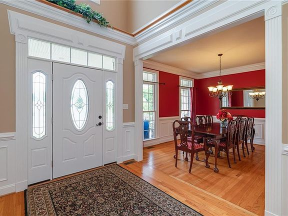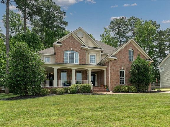 Must see this stunning 5 Bedroom home, 4 full bath home in the desirable Founders Pointe, award-winning resort-style waterfront community! Enjoy the large wrap-around porch with a view of the pond & fountain. Beautiful landscaping throughout the property. Downstairs one bedroom with full bath, formal dining room, kitchen with custom cabinetry, stainless steel appliances, gas cooktop, granite countertops, eat-in-kitchen area, walk-in pantry, desk station area, and large center island with bar-style seating. Marble-surround gas log fireplaces in both the keeping room and the family room with access to the patio. The second-floor primary ensuite has a spacious walk-in closet with a built-in closet system, jetted tub, and ceramic tile in the bathroom. Large bonus room on the 2nd floor could be used as a media room/playroom/bedroom many possibilities. 3rd floor has roughed in plumbing, electrical, Drywall, HVAC for future expansion,