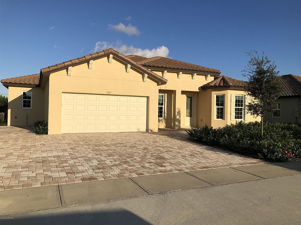 This new Hacienda style Tile roof 3 bdr &study, 3 full bath home features Master & Guest Suites and a 2 car garage. Paver driveway allows for a boat or large vehicle parking. Great amenities featured are 12ft ceilings, 8ft doors & sliders. Impact glass on all windows including the sliders. Spacious kitchen cabinets, generous kitchen island, quartz countertops & stainless steel appliances to include; microwave,cook top,dbl wall oven,dishwasher & whirlpool sidekicks, side/side freezer & refrigerator set. Wood look plank tile floors throughout the home! Piece of mind with a home warranty on the balance of the 10yr structural warranty by Centricity. Lawn Service included for first 3yrs. Aluminum fenced yard. Gated community. Beautiful to See-