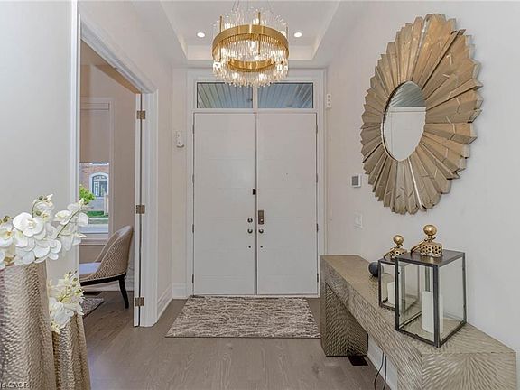 This exquisite luxury residence in the prestigious Glen Abbey Encore community offers approximately 5500+ square feet of living space as per the builders plans. Step into refined elegance with this impressive 4 + 1-bedroom, 6-bathrooms, which is designed for comfort and sophistication. Every bedroom comes with its own private ensuite, and the home is finished with stunning hardwood floors throughout no carpet in sight. The main level is a true entertainers dream, featuring a grand foyer, a formal living room, a powder room, and an elegant dining area. The cozy family room, with coffered ceilings and a gas fireplace, connects seamlessly to the neighborhoods largest gourmet kitchen, fully equipped with top-tier appliances, built-in cabinetry, a massive island, sleek quartz countertops, custom cabinetry, and a striking quartz backsplash. The sunny breakfast nook opens to a beautifully landscaped, fully fenced backyard, perfect for outdoor enjoyment. Upstairs, the opulent primary suite boasts a double-door entry, a spacious walk-in closet, and a spa-like 5-piece ensuite, complete with a glass shower and a luxurious soaker tub. The professionally finished basement adds even more living space, with a bedroom, Jacuzzi, a recreation room, and a games room featuring a snooker table ideal for family gatherings or entertaining guests. Located just minutes from highly rated schools, major highways, Oakville Trafalgar Hospital, the Glen Abbey Community Centre, library, shopping, parks, downtown Oakville, and the lake, this home offers unbeatable convenience. This is a rare opportunity to own a move-in-ready, luxurious property in one of Oakvilles most coveted neighborhoods. Don't miss your chance to experience the best in modern living.