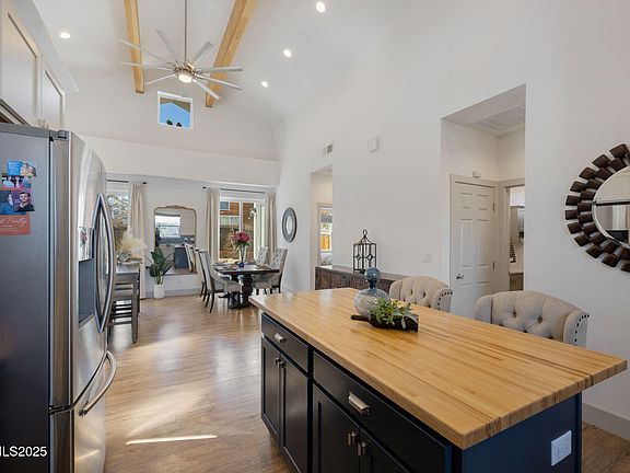 This immaculate, nearly new -2018 built contemporary 3BD/2BA home sits in Reno's coveted Historic Old Southwest-Midtown neighborhood. Light, bright and inviting this home features soaring ~18+ ft vaulted ceilings, abundant natural light and a stylish great room that flows seamlessly into the contemporary kitchen with island seating, large pantry and chic neutral finishes. Perfect for those who love low maintenance living, the front yard offers artificial turf, while the private backyard boasts a spacious entertainer's patio and 2 roomy storage sheds. Enjoy thoughtful upgrades throughout including an EV charging station, extra parking, two storage sheds, beautiful electric fireplace, blackout window shades throughout and a welcoming front entry with area for seating. With an easy walk to Midtown dining, shopping and Plumas Park, this turn-key home offers modern living in one of Reno's most sought-after neighborhoods.