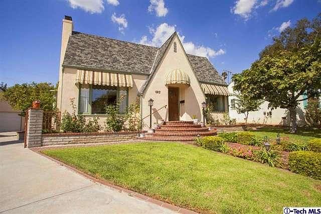 You are taken back to 1928 when entering this lovingly cared for English cottage located in the highly desirable Rossmoyne area. This property sits on a unique semi-circle street off quiet Moncado Dr. Restored w/all charm & integrity of its time. LR w/French windows,high cove ceilings & original FP. One arched doorway leads to spacious formal DR w/cove ceilings w/inset. Adjacent French doors to breakfast rm. 3rd bed converted & was used as family rm. Master bed has an adjoining cozy retreat. Both baths have period details. Other features including central AC/Heat, HW floors, crown molding & recessed lighting. Kitchen w/huge island,tiled counter tops,lots of cabinet space. Laundry hookup inside kitchen. Fenced yard w/fruit trees & sparking pool. Detached 2-car garage w/attic. Bonus rm off garage was used as an artist studio or can be used as whatever you wish it to be. Here is an exceptional opportunity to own a character home in one of the most sought-after neighborhoods of Glendale.