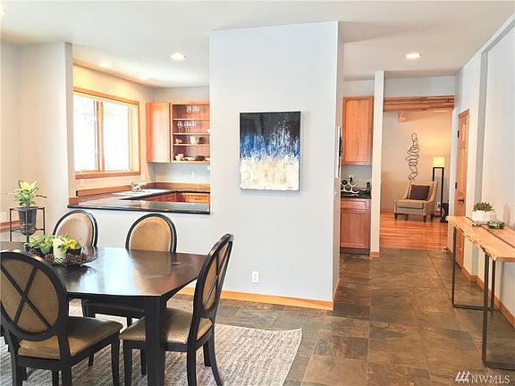This beautiful light-filled home boasts the warmth of a northwest contemporary custom built home. Featuring hardwood cherry floors/cabinets, slate floors, wood beams and wrapped windows. Upstairs the vaulted ceilings and abundant windows show off a view of Canada from bedroom and the 400+ square foot deck. Large bonus room offers many possibilities. New refrigerator, dishwasher, microwave, carpet, tons of storage, RV parking, A/C, hot tub in private backyard. Pre-inspection report available.