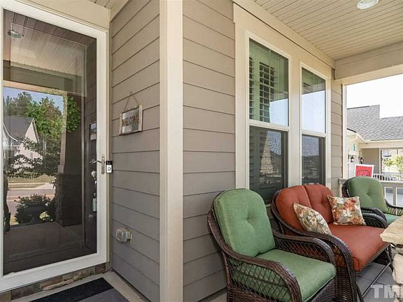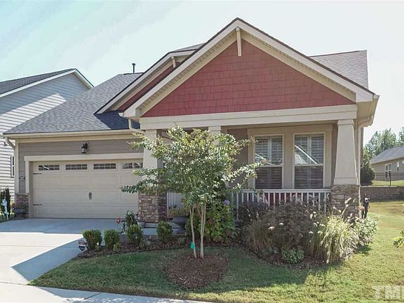 Forget New Construction! This one has it all and then some. 3 bedroom ranch plan with flex space w/murphy bed. Master with custom built closet. Gourme tkitchen with gas cooktop, quartz countertops, glass backsplash, and upgraded cabinets. Custom barn doors, plantation shutters, heavy crown molding, enclosed sunroom with AC, pergola, stacked stone fireplace, and shiplap feature wall, oversized 2 car garage with powered storage lift. Walking distance to clubhouse and quick commute to RTP and shopping.
