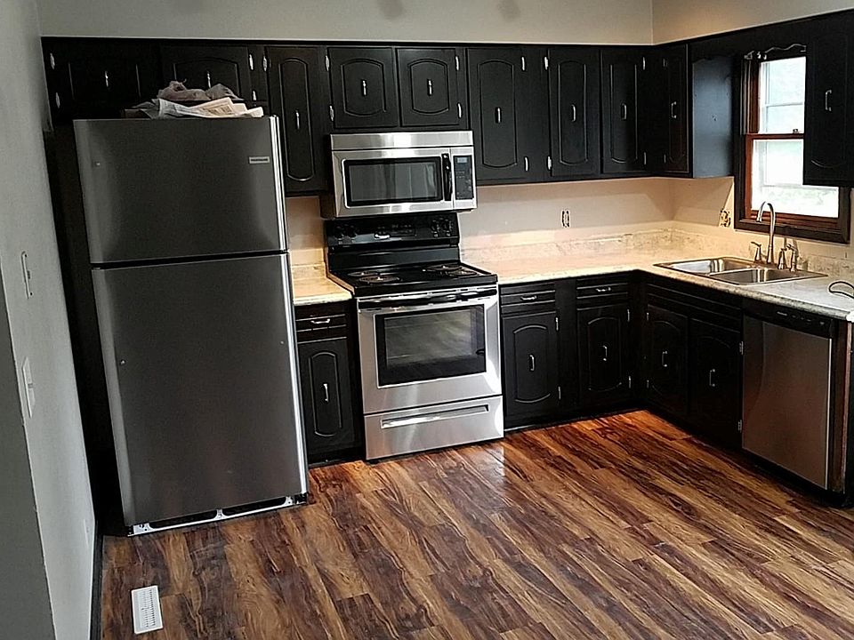 NEWLY RENOVATED! Perfect for families! Boast your eye on this large 2 story duplex on a spacious corner lot in a the perfect neighborhood. Just minutes drive to shopping and restaurants. This duplex features a large driveway for off street parking & 1 included (or 2 stall garage for an extra $50/month). Large back yard and patio area. You are welcomed home to an eat in kitchen featuring a half bath on the main level. The living room space is large. On the second level there are 3 large bedrooms with large closets, a full bathroom with tub and shower. This duplex also includes a large finished space in the basement. Some of the updates include new carpet, new appliances, new counter tops, new windows, fresh paint throughout the whole home & fully remodeled bathrooms, kitchen, and basement.
