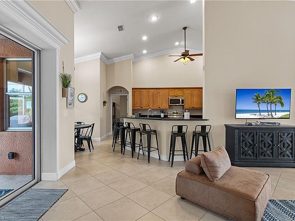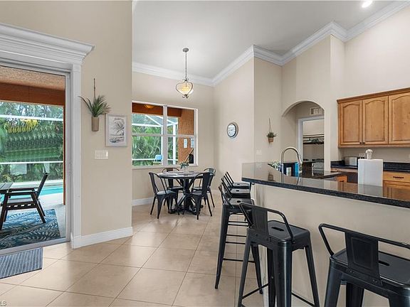 STUNNING, REMODELED ($100,000+/-), FURNISHED-TURNKEY 5 BEDROOM, 3 BATH, 2 CAR GARAGE, POOL HOME HAS IT ALL! SOARING 16' CEILING ACCENTED WITH CROWN MOLDING THROUGHOUT THE ENTIRE HOME, ALL DIAGONAL SET TILE FLOORS THROUGHOUT WHOLE HOME FOR "EASY MAINTENANCE" ADD IN A TRUE EXTENDED "CHEFS" KITCHEN WITH ALL CUSTOM 42" UPPER WOOD CABINETS, LEVEL 5 QUARTZ TOPS, ALL STAINLESS STEEL APPLIANCES, EXTENDED EAT-AT-BAR W/SEVEN STOOLS FOR FAMILY KITCHEN GATHERINGS AND BEST PART, this home is situated in a HIGHLY desirable SW CAPE neighborhood. THIS HOME is an epitome of comfort and style. MASTER BEDROOM IS HUGE and opens up to the pool and pool deck. MASTER BEDROOM HAS VOLUME 16' CEILINGS, HIS & HERS WALK-IN CLOSETS, DUAL QUARTZ VANITIES & SINKS, SOAKING TUB AND FLOOR-TO-CEILING GLASS & TILE WALK-IN SHOWER. Recent upgrades, including a NEW ROOF and spacious backyard with beautiful Areca palms that offer a complete sense of privacy. With a split floor plan and high vaulted ceilings, formal dining, breakfast nook - the interior exudes an open and airy feel. With all the glass windows and sliders, home is LIGHT-BRIGHT-SUNNY ALL YEAR ROUND. Whether you're seeking a permanent residence or a vacation rental investment, (PROPERTY GENERATES A SUBSTANTIAL VACATION RENTAL INCOME) this property caters to both. THIS IS "FLORIDA COASTAL" LIVING AT IT'S BEST with easy access to RSW International Airport, I-75, Major Shopping, A-Rated Schools, Restaurants, Hospitals, Churches and Ft. Myers Famous Beaches. What more could you ask for? All water assessments have also been PAID! home comes with a one year complete home warranty for TOTAL BUYER COMFORT!