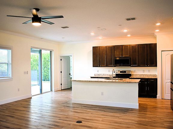 Fully fenced yardLarge islandGranite countertopsResort-style pool and spaLush tropical landscapingDesigner walk-in closetOpen-concept layout