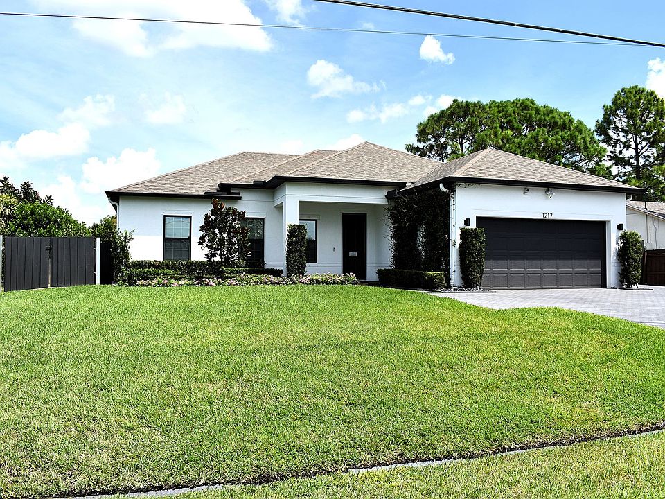 Stunning Modern Pool Home with Spa - Your Private Oasis Awaits! Step into this beautifully updated 3-bedroom, 2-bath, 2-car garage home featuring a resort-style pool and spa, perfect for relaxing or entertaining. The expansive covered back porch and fully fenced yard are surrounded by lush, tropical landscapingcreating your own serene retreat. Inside, you'll love the open-concept layout with plank tile flooring throughout, granite countertops, complete with stainless steel appliances and a large island. The primary suite boasts a designer walk-in closet, offering both style and functionality. Also include, blinds in living and bedroom areas. Wide driveway with space for a boat or RV. Include pool service, lawn maintenance. This home truly has it all ** MUST SEE**