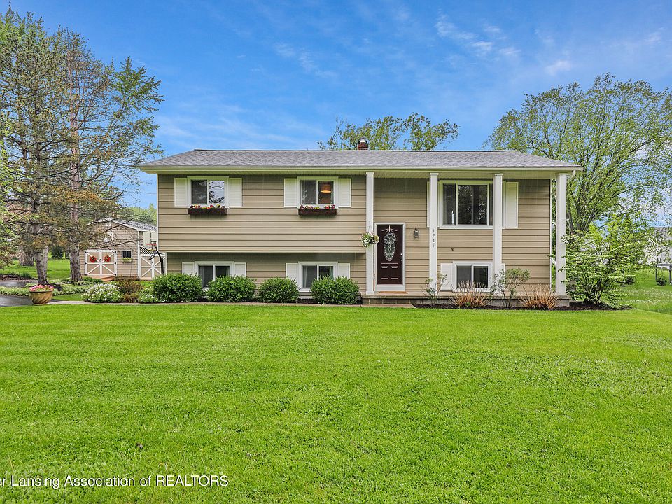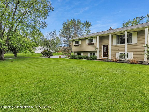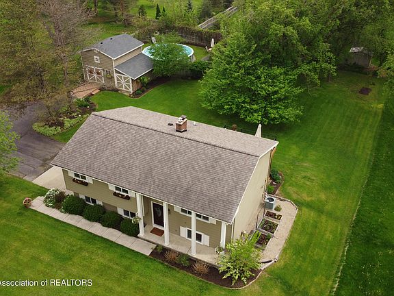 Charming 3 bedroom raised ranch situated on over half acre lot The best of all worlds in county-like setting and close to downtown DeWitt, parks, and shopping Beautifully landscaped yard with huge backyard, barn, and private swimming pool Beautiful entrance with new banister, flooring and light fixture. Living room flows into kitchen with dining space. White cabinets feature new hardware, granite counter tops and brand new stainless steel refrigerator and dishwasher. Access to large updated composite deck overlooking peaceful backyard. 3 bedrooms on the main level with updated full bath. Custom built-in Murphy bed makes for a perfect guest room or office space.