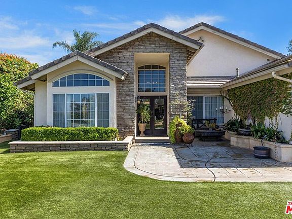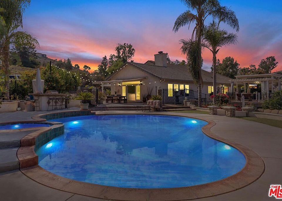 Sitting on over an acre of lush landscape, this 4 bedroom, 2 bath, single-story home is everything you're looking for! All 2,756 sqft of indoor/outdoor living could be yours in the sought after neighborhood of The Orchard.Cathedral ceilings welcome you in to a beautiful grand entry with access to the sunken living room and a double-door exit to a stunning outdoor living room. In the open kitchen you'll find stainless steel appliances and plenty of cabinet and counter space. The open layout extends to your billiards room, family room, and dining room; conjoined by a dual sided gas fireplace. The magic continues in the bedroom wing. The primary bedroom has access to its own private garden and a beautifully remodeled bathroom. Two of the guest bedrooms share a private and gated outdoorspace. The fourth bedroom is currently outfitted as an office with a built in Murphy bed. The backyard is an entertainer's dream with an in-ground pool, jacuzzi, gas grill, fire pit and VIEWS, VIEWS, VIEWS. There is plenty of space for a sports court, RV parking or beyond!You truly have to see this place to believe it. *Multiple offers*