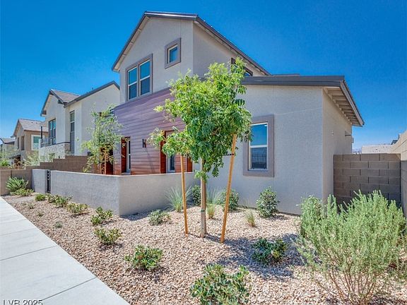 Modern living at Grand Park by Tri Pointe Homes, this Home blends seamlessly with indoor-outdoor style and the natural beauty of Summerlin’s western foothills. This brand-new 2,516 sq. ft. home features 3 bedrooms, 3 baths, and a 2-car garage all wrapped in sleek architecture and a smart, open layout. Inside, a flowing great room connects to a spacious, stylish kitchen—perfect for hosting or relaxing. The first-floor bedroom offers flexibility as a guest suite, teen retreat, or quiet home office. Off the dining area, a secluded loggia creates the perfect space for year-round outdoor entertaining. Upstairs, nearly all bedrooms offer privacy and calm. The primary suite features a massive walk-in closet with space to organize and impress. Enjoy cool evenings on the mirador, a covered balcony off the loft ideal for lounging, game nights, or study time. With multiple outdoor living areas next to Summerlin’s 90-acre Grand Park, this home is designed for vibrant modern living.