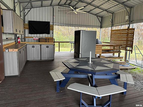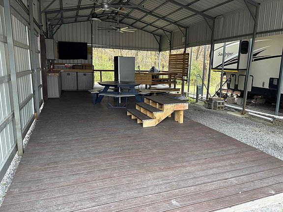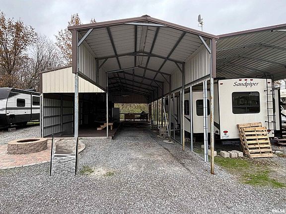 Located in the Lake of Egypt Campground, this lot has a carport cover that makes it partially enclosed, north side of enclosure has sliding doors that can open for added room or for a more open feel. Decking around north side and rear makes a perfect spot for your camper, in the back you will find a built in sink area, refrigerator, cabinets and mounted TV for outside entertainment. Lots of room for dining quietly or entertaining friends and family. Lake of Egypt Campground is open 8 months of each year and there is a $4000 yearly lease for your camper spot. Call today for more information.